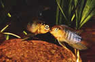 Между представителями подгрупп А и В есть только одна небольшая разница: если первые обычно размещают икру на открытом месте, то вторые поступают таким образом редко, предпочитая нереститься в укромных уголках. В естественных условиях они, очевидно, разыскивают какую-либо щель между камнями или выкапывают ямку, позволяющую им спрятаться. Именно из-за своих размеров карликовые цихлиды вынуждены чаще прибегать к разным уловкам, чем переходить в нападение при охране икры или личинок. В то же время это совсем не означает, что они не проявляют агрессивности, если их потомству угрожает серьезная опасность. Мы не раз наблюдали, как крошечные самки-цихлиды словно фурии налетали на рыб, во много раз превосходящих их по размеру, и обращали пришельцев в бегство.