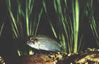 Badis badis (бадис-бадис, синий окунь, рыба-хамелеон). Обитает в Индии и Мьянме, в длину достигает 5см. И внешне, и по повадкам он похож на карликовых цихлид, хотя относится к семейству нандовых. Цвета бадиса почти невозможно описать. Они могут полностью измениться за несколько секунд, приобретая просто невообразимые сочетания, и через минуту можно подумать, что перед вами совсем другая рыба. Лишь один признак остается неизменным – крошечные крапинки, идущие полосой по диагонали через глаза вверх. Передняя часть спинного плавника обычно голубая с красным окаймлением. У этой необычайно интересной рыбки есть, однако, один существенный недостаток: ей необходим только живой корм. Если пища не подает признаков жизни, бадисы ее не замечают. Самки уступают самцам в размере и имеют четко вытянутое брюшко (конечно, не перед нерестом). Это совсем не признак заболевания, а нормальное состояние рыб.