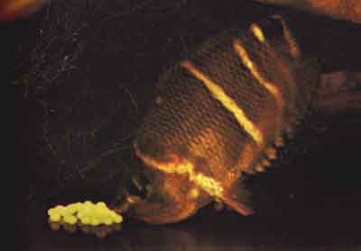 В период инкубирования, длящийся 10–14 дней при температуре 24 С, самца следует отсадить. Самка остается в печальном одиночестве, и ее действительно можно пожалеть: все это время она живет без корма. Поэтому, когда инкубационный период закончится, сразу покормите беднягу, иначе она примется за то, что попадется "под руку", т. е. за свое потомство.