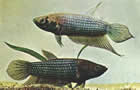 Sphaerichthys osphromenoides (шоколадный гурами). Этот старый любимец аквариумистов родом из Малайзии. В 1972г. Г.И.Рихтеру удалось впервые добиться нереста этого гурами и с помощью прекрасных фотоснимков доказать, что он также инкубирует икринки во рту.