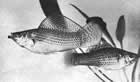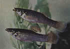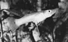 Gambusia affinis (гамбузия аффинис, или обыкновенная гамбузия). Родом из штатов США, расположенных у Мексиканского залива. Длина самок 3,75см, самцы на 2,5см меньше. Окраска тела серебристая, плавники усыпаны черными крапинками. У некоторых экземпляров на теле появляются черные пятнышки, иногда встречаются абсолютно черные экземпляры. Этот вид широко используют для истребления комаров в водоемах, и это единственно хорошее, что можно сказать о гамбузии. В аквариуме гамбузия ведет себя безобразно, часто превращая плавники своих соседей в лохмотья. На испанском языке эту рыбку называют gambusino, что означает "бесполезная". На юге Флориды гамбузия встречается все реже, видимо, ее уничтожают прожорливые белонезоксы, недавно обосновавшиеся там.