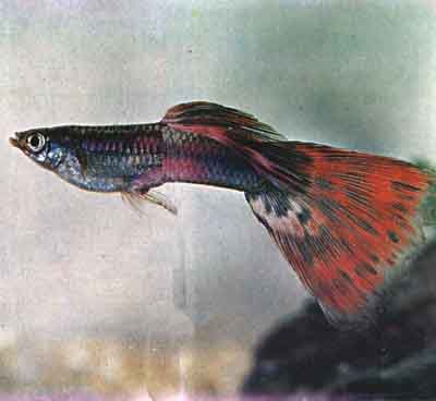 В конце 1960-х годов эта гуппи занимала первое место в Европе. На выставках гуппи победительницами считаются наиболее красивые рыбы с очень яркой пигментацией и длинными плавниками (фото X. Хансена, сделанное в Берлинском аквариуме)
