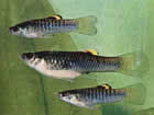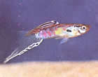 Poecilia reticulata (гуппи). Это жительница Тринидада, Барбадосских о-вов, Венесуэлы, Гайаны и, видимо, некоторых районов Бразилии. Длина самцов 3,75см, самок 6,25см. Гуппи были объектом столь многих инбридингов, скрещиваний с использованием разных цветовых линий и направлений селекции, что в настоящее время ее исходные признаки почти исчезли. Не проходит года без того, чтобы кто-то не заявил о выведении новой (зачастую дорогостоящей) супер-гуппи.