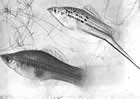 Phallaceros caudimaculatus reticulatus, внизу - самец (фото Р. Зукала)