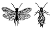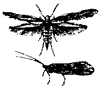 Две пары покрытых волосками крыльев, которые в покое складываются крышеобразно |