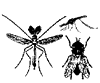 Одна пара прозрачных перепончатых крыльев. Задние крылья превращены в жужжальца |
