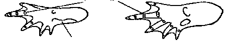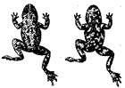 Задняя лапа, вид снизу: слева зеленой жабы — бугорки на нижней стороне пальцев одинарные и кожистая складка: справа серой жабы — бугорки двойные
