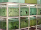 Донные субстраты в виде песка различных фракций и торфа нужны в тех случаях, когда рыбы откладывают икру на дне. Так, для сезонных икромечущих карпозубых (нотобранхиусов, цинолебиасов и др.) естественным субстратом будет уложенная на дне торфяная крошка, куда нерестящиеся рыбы буквально ныряют, чтобы закопать икру поглубже, предохранить ее от полного высыхания в течение сухого сезона. Прежде чем торфяную крошку укладывать на дно, ее следует несколько раз, меняя воду, прокипятить для того, чтобы удалить излишки органических веществ, окрашивающих воду в темно-коричневый цвет. Хорошо промытый и отсеянный песок нужен рыбам (например, дисковидному окуню, многим видам цихлид, копеина гуттата и др.), строящим из него подобие гнезда, куда впоследствии будет отложена икра. Макрогнатусы, мастоцембелусы, буноцефалусы и др. зарываются в песок полностью, где также может происходить их нерест. Серый речной песок, размером с зернышко гречневой крупы, устраивает большинство видов. Следует рекомендовать также закрасить дно нерестовика снаружи темно-коричневой краской или же поставить его на лист темной бумаги. Эта мера успокаивает рыб, значительно снижая стресс, если аквариум переносится в новое помещение.