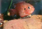 Рыбы получали полноценное питание, о чем свидетельствовали их быстрый рост и общее хорошее развитие, но предполагаемые самки икру не набирали и никак не реагировали на «призывы» самцов, которые выражались в удивительно красивой игре плавников и характерных телодвижениях. Дополнительное включение в рацион крупного мотыля также не произвело ожидаемого эффекта. Поскольку температура воды порядка 25-26°С, ее жесткость (14 градусов DGH), значение рН=8,0-8,4, а также режим подмены воды (20% в неделю) полностью соответствовали необходимым требованиям, автор решил на время увеличить соленость воды в аквариуме (до 3 граммов морской соли на литр воды), а затем плавно снизить концентрацию соли при подмене воды. Такая мера обычно помогала инициировать набор икры у малавийских, центральноамериканских цихлид и радужниц (Melanotaenia). Судя по внешнему виду самок, это произвело на лампрологусов-бабочек определенное воздействие, но все же чего-то еще не хватало. Вспомнив об особенностях поведения подрастающей молоди, их склонности к воровству и охоте за мальками ракушковых лампрологусов, автор решил попробовать подкормить взрослых особей молодью лампрологусов Миля (Lamprologus rneeli), разводимых без особых усилий. Вскоре рыбы к такой диете (исключительно дорогой!) привыкли, и казалось, что они вот-вот начнут нереститься, так как вся «атмосфера» аквариума была буквально пронизана половыми феромонами регулярно нерестившихся L meeli. Наконец у самок, изрядно пополневших, начал появляться яйцеклад - предвестник скорого нереста. Сформировавшиеся пары были помещены в отдельные аквариумы с такой же по составу водой и укрытиями в виде каменных расщелин. Рыбы играли, прятались друг от друга, но не более того. Опять потекли недели ожидания... Надо было еще что-то предпринять, и тогда автор решил добавить во все аквариумы немного мельчайшей «живой пыли» - дать сигнал об изобилии корма для будущих мальков. Это рыбам явно не понравилось - они извивались всем телом, делали резкие судорожные сокращения жаберными крышками. Мельчайший планктон их раздражал, но яйцеклады самок еще больше набухли. Тогда в один из аквариумов была помещена морская раковина наподобие тех, в которых успешно нерестились ракушковые лампрологусы, но более крупного размера. Как оказалось, это было то, чего рыбам так не хватало для нереста. Осмотрев со всех сторон раковину, они по очереди «ныряли» внутрь, где производили какие-то действия: видимо, выбирали и очищали площадку для икрометания. Спустя три дня внутри раковины на долгое время оставалась лишь одна самка - видимо, икра уже была отложена. Дальнейшее - вопрос техники. Самец, как не принимавший участия в уходе за икрой, из аквариума был удален, а спустя еще несколько дней самка стала выводить свое потомство наружу, где рыбки получали свой первый корм - науплий рачка артемии. Как только мальки немножко подросли, во избежание неожиданностей самка тоже была выловлена и удалена.