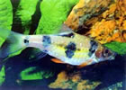 Краснощекий барбус (Barbus orphoides Cuvier & Valenciennes,1842) имеет широкий ареал распространения в Юго-Восточной Азии, включая Таиланд, остров Калимантан и некоторые другие острова Индонезии. Рыбы в равной степени населяют реки, озера и стоячие водоемы. Они вырастают в длину до 25 см. Эти рыбы хорошо уживаются в компании с крупными барбусами, особенно с В. lateristriga. Молодь краснощеких барбусов с характерными темными оторочками хвостового плавника по внешнему виду очень напоминает других барбусов близких видов (В. daruphani, В. schwanenfeldi), встречающихся в том же ареале. Для содержания может быть рекомендована температура 24-26° С и выше. Сведения о размножении В. orphoides в условиях аквариума отсутствуют, поэтому аквариумистам приходится иметь дело с природными и разведенными в бассейнах экземплярами. Обязательным условием благополучного содержания этих рыб является тщательное карантинирование с применением профилактических препаратов типа «Нески профилактик» в течение двух-трех недель. В случае истощения рыб вследствие внутренних паразитов желательно произвести гипертермическую обработку при температуре 33-34° С, аналогичную той, что проводится для дискусов (см. книгу «Дискусы - короли аквариума»). В последующий восстановительный период в течение 7-10 дней необходимо производить учащенную смену воды (30-50% ежедневно), после чего режим подмены воды должен быть плавно нормализован. Чтобы стимулировать аппетит рыб. Частое (5-6 раз в день) кормление высокобелковой пищей в реабилитационный период способствует их быстрейшему выздоровлению.