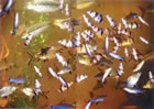 Отлов рыб доставляет местным рыбакам немало трудностей, так как самые «урожайные» места иногда настолько сильно зарастают водными растениями, что не дают возможности нормального передвижения на лодке и уж тем более постановки сетей. Всевозможные верши, сачки и подъемники составляют главный арсенал рыбацкого снаряжения для сборщиков, или, как их еще называют, коллекторов аквариумных рыб.
