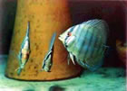 Успех в размножении дискусов определяется, в первую очередь, правильными условиями содержания и кормления в неволе. Как и все цих-лиды, дискусы, выращенные вместе, по мере созревания разбиваются на пары и их рассаживают по отдельным аквариумам.