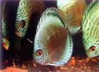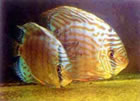 Одной из последних эффектных новинок считается бирюзовый дискус «Змеиная Кожа» (Snake Skin Turquoise) малазийского разводчика из Пенанга Тань Сим Кенга.