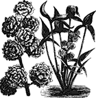 Цветы белые, с розовым отливом, махровые, вроде цветов махрового Ranunculus aconitifolius. Цветение зависит от температуры воздуха и в теплицах бывает начиная с мая, а на чистом воздухе не ранее июня.