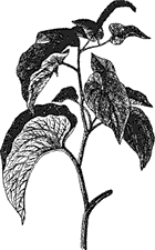 Листья очередные, сердцевидные, извилистые, темно-зеленые, с перепончатым прилистником, напоминающие собой несколько листья гречихи, на которую, скажем между прочим, походит немного и само растение. Листья эти не любят сильного солнечного припека и коробятся.