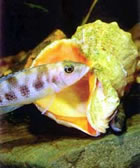 У ракушковых лампрологусов до момента появления вполне сформировавшихся мальков вообще вряд ли что-то доведется увидеть, но можно попробовать просветить раковину лампой, чтобы по движению тени предположить, что там на самом деле происходит. Ведь только самец располагается у входа, а самка появляется крайне редко: кажется, что она где-то там застряла и не может выбраться назад. Не беспокойтесь - ничего с ней не случится. Способность перемещаться и мавневрировать в узких кулуарах раковины у этих рыб заложена на генетическом уровне.