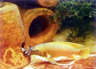 В ряде случаев рыбы откладывают икру в пещерках, куда право входа имеет только самка, которая и берет на себя бразды правления по уходу, а самец занят почти исключительно охраной прилегающей территории. Чтобы убедиться в том, что икра все-таки отложена, можно аккуратно приподнять руками цветочный горшок и, посветив фонариком или переносной лампой, посмотреть. Конечно, эти действия рыбам не по нраву и они смело атакуют руку, стараясь как можно больнее вас ущипнуть. Крупные цихлиды - астронотусы, цихлазомы - могут при этом укусить до крови, что малоприятно, так что избегайте неожиданностей.