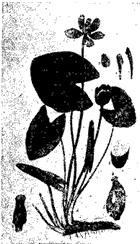 Сажается на дно, откуда длинные, усаженные листовыми розетками стебли поднимаются до поверхности (рис. 3.13) и в благоприятных условиях покрываются массой золотисто-желтых цветов. Цветы довольно крупные, в 4—5 сантиметров в диаметре, о пяти разрезах, колесовидные, трубчатые. Сидят на длинных цветоножках и для цветения поднимаются над водой.