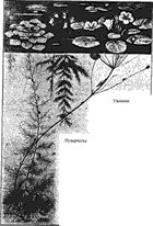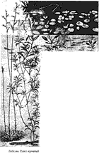Чтобы насладиться его прелестным видом, его надо собирать ранней весной, как только сойдет снег, и помещать на дно аквариума, где он проживет недели две-три, много месяц. Сажать его нужно как можно короче и помещать в самую чистейшую воду, так как он очень легко покрывается грязным налетом и даже, подобно роголистнику, как бы всасывает его в себя. Родственный с ним, но далеко не такой красивый вид, Ran. divaricatus, изображен на рис. 3.9. Прелестные его белые цветочки покрывают поверхность воды, как снегом.