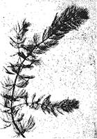 Myr. verticillatum L., разнящийся от М. spicatum тем, что цветы у него сидят не в конечной кисти, а в пазухах листьев, а самые листья расположены кольцами не по 4 листа, а по 5 листьев.
