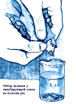 Но даже тогда, когда в аквариуме разводят рыб, охраняющих свое потомство, аквариумисты все чаще начинают вмешиваться в этот процесс и отбирают у производителей икру для инкубации в отдельном сосуде. У скалярий, например, это делают уже через несколько часов, аквариумисты не только отбирают икру, отложенную на субстрат, но и у самок, инкубирующих ее во рту. Делают это потому, что им бывает трудно в условиях аквариума выдерживать длительное голодание и не поддаться соблазну проглотить корм, а вместе с ним и икру. Хотя многие признают, что развитый инстинкт сохранения потомства нередко побеждает чувство голода. Следует отметить, что самку с икрой в новый аквариум нужно переносить обязательно вместе с водой, зажав ладонями плотно трубку, в которой она прячется. У некоторых крупных цихлид, откладывающих икру на камне или на стенке горшочка, икру отбирают, если производители не имеют устойчивого родительского инстинкта. Рассорившись, они могут съесть икру или личинок. Эти примеры с точки зрения биологии можно отнести к не совсем нормальным, возникающим в условиях аквариума. Часто такое поведение провоцируется нашим грубым вмешательством, неловкими действиями, тогда рыбы съедают потомство вопреки своей природной логике, не видя возможности его уберечь.