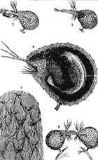 Первое наблюдение этого рода было произведено профессором Коном, который летом 1874 года нашел в одном таком пузырьке целый зверинец маленьких рачков и других водяных животных, напрасно старавшихся вылезти из своей зеленой тюрьмы. Несколько дней спустя они оказались мертвыми, а позднее от них остались только наружные покровы, мягкие же части были съедены.