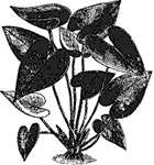 Антуриум с сердцевидно-продолговатыми на длинных черешках листьями, достигающими более полуаршина длины и 5 вершков ширины. Листья эти темно-зеленые, блестящие, очень твердые. Цветы невзрачные, зеленые. Стебли, будучи обернуты мхом, дают боковые побеги и представляют, таким образом, красиво разветвленное растение. Любит комнатный воздух более оранжерейного, почему в комнате быстро разрастается и дает чрезвычайно роскошные экземпляры.