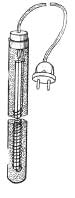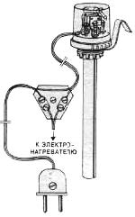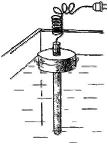 Электрический шнур грелки в этом случае лучше делать из гибкого спирального провода. Такая грелка будет свободно опускаться и подниматься вместе с водой. С соляными стеклянными грелками можно поступить еще проще. Трубка заполняется соляным раствором только на треть, а угольные электроды опускаются до необходимой глубины. Такая грелка остается на плаву без дополнительных приспособлений.