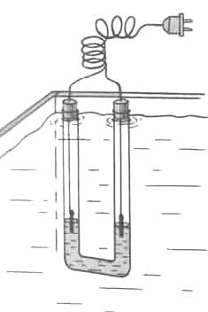 Два угольных электрода, взятые из батареек для карманного фонарика, помещают в u-образную трубку, заполненную раствором поваренной соли. Изменяя концентрацию раствора, можно менять мощность нагревателя. Для соляных грелок обычно используют стеклянные трубки, но существуют и грелки, изготовленные из гибкого пластикового шланга. Такая грелка может быть любой длины, ее укладывают на дно аквариума так, чтобы концы трубки находились выше уровня воды. Грелка обеспечивает равномерный прогрев всей толщи воды и грунта, что очень важно для хорошего роста растений.