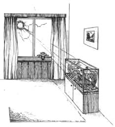 Искусственное освещение должно согласовываться с величиной фонового естественного освещения, которое зависит от размещения аквариума в комнате и ориентации окон.