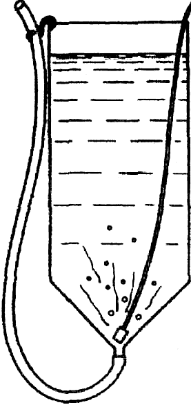 2. Трубочников помещают в кусок капронового чулка (или марли), завязывают с обеих сторон и кладут в широкую емкость, заполненную свежей водой (слой воды — 1—2 см). Вскоре черви начинают пролезать через ткань чулка и собираться около него кучками. Чтобы ускорить этот процесс, следует поставить на чулок с трубочником сосуд с теплой, а затем с горячей водой. Черви от теплой воды перемещаются к периферийным участкам чулка, а затем, спасаясь от кипятка, сразу же вылезут из него в чистую воду.