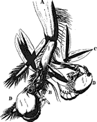 Описывая процесс линьки, мы упомянули, между прочим, что, спеша снять оболочку, рак иногда принужден бывает прямо оторвать лапку или клешню; но кроме процесса линьки он делает нередко то же самое произвольно, под влиянием чего-нибудь другого, напр., страха. Совершив над собой подобную ампутацию, рак бежит на оставшихся у него ногах далее, как будто с ним ничего не случилось, а по истечении некоторого времени на месте отброшенных членов вырастают новые, но форму прежних принимают только после нескольких линек и одинаковой величины с утраченными никогда не достигают. Вот почему встречаются так часто раки, у которых одна клешня меньше другой: маленькая — всегда признак, что выросла позднее и заменила собой оторванную или отброшенную. Вообще раны, нанесенные ракам, особенно вскоре после линьки, в то время, когда покров их еще не совсем тверд, могут производить анормальные наросты, поддерживая которые можно породить крайне интересные уродливости (интересный опыт для любителей).