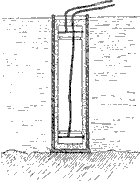 Затем устроенный таким образом цилиндр опускают в воду и соединяют идущие от пластинки проволочки с городским током. Тогда песок начинает нагреваться, нагревает цилиндр, а этот последний начинает отдавать постепенно свою теплоту и воде.