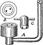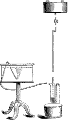 Аппарат носит название ѕКупающаяся жемчужинаї и состоит из медного полого цилиндра (рис. 15.8), снабженного внизу спускным краном (с), сбоку — водомерным стеклом, а вверху — трубкой и плотно надевающейся на кран водопроводной воронкой (а), куда льется из этого последнего вода.