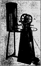 Подобным же шаром производится насыщение воды воздухом, производимое и при помощи парового двигателя Гейнрици (Heinrici), дающего возможность насыщать воздухом сразу несколько аквариумов. Двигатель этот А, как показано на рис. 15.3, утвержден на металлической подставке, под которой помещается подогревающая его лампа. Приведенный в движение, он нажимает педалью С на твердый шар и гонит таким образом набираемый этим шаром воздух в аквариум. Что касается самого воздуха, то он берется или в комнате, где находится двигатель, или же проводится прямо со двора, где он гораздо чище, для чего одна из трубок шара выводится через форточку наружу. Вторая часть аппарата В (рис. 15.3) представляет собой холодильник, при помощи которого нагревающаяся в двигателе вода охлаждается. Такой аппарат чрезвычайно хорош, но дорог, т.е. даже самый маленький (в1/40 лошад. силы) вместе с холодильником обходится не менее 60—70 руб. Приобрести его можно у Трындина (Лубянка, собствен. д.).